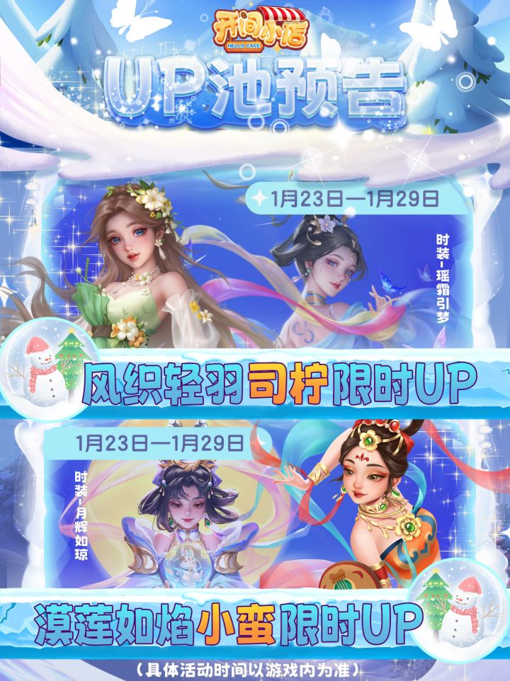 💖【UP池预告早知道】💖本期UP来啦!🌼✦风织轻羽「司柠」🌼✦漠莲如焰「小蛮」〓以上店员本期受邀限时up〓【每期UP更新预告】店长们囤扭蛋许久只为此刻拥有!为了最喜欢的雇员,一定要关注Ta的限时up~希望店长抽到阵容想要的员工!卡池不歪!店长们还想要哪位雇员UP也可以留言,倾听店长们的声音🍭~#休闲时光 #发现好游戏 #开店游戏 #游戏日常 #游戏杂谈 #浅评一下