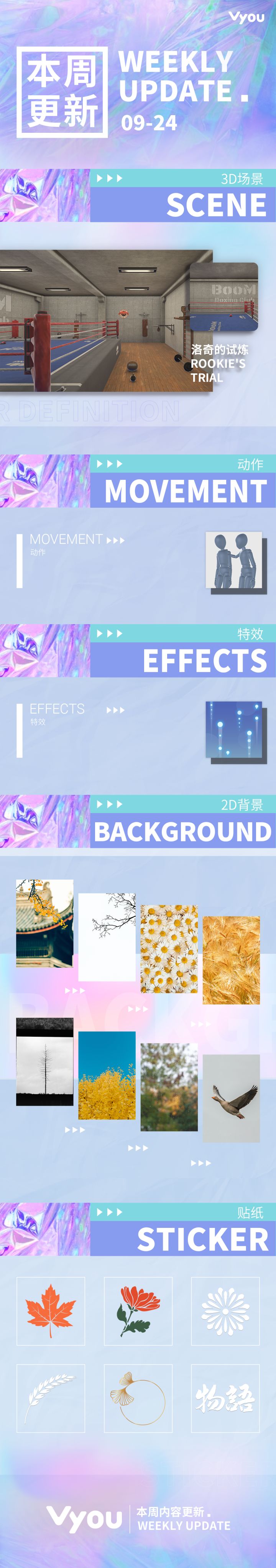 Vyou的新版本即将于今天中午上传各大应用商店,根据审核的速度,大家将陆续收到版本更新的通知!2.1.0版本更新功能介绍:- 新增改名卡功能;- 优化用户拉黑体验,被对方拉黑后仍能拉黑对方;- 优化用户购买形象卡的体验,调整为无数量限制;- 修复元世界中滑动屏幕时容易错误弹出互动面板的问题;- 修复删除评论后对方仍然在通知中看到评论的问题;- 修复单人动作面板中关闭动作循环时动作无法