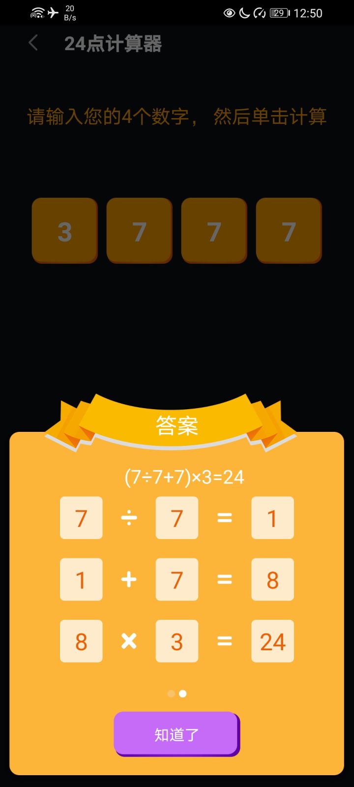 五星全给游戏内自带的24点计算器!