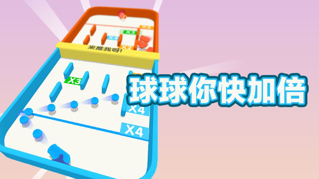 这是一款爽快好玩的弹球游戏,目标是在对战中让你的球尽量获得更高的倍数,不断分裂复制,最终击败对手。