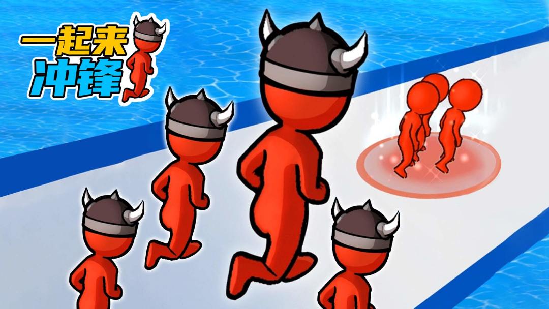 一起来冲锋是一款融合堆叠玩法的跑酷游戏,玩家在游戏中将控制领头人物移动,拾取正向道具增加队伍人数,要注意,障碍和减分道具都会造成队伍人数减少,当人数小于零或人数小于对抗队伍人数时,游戏就会失败。