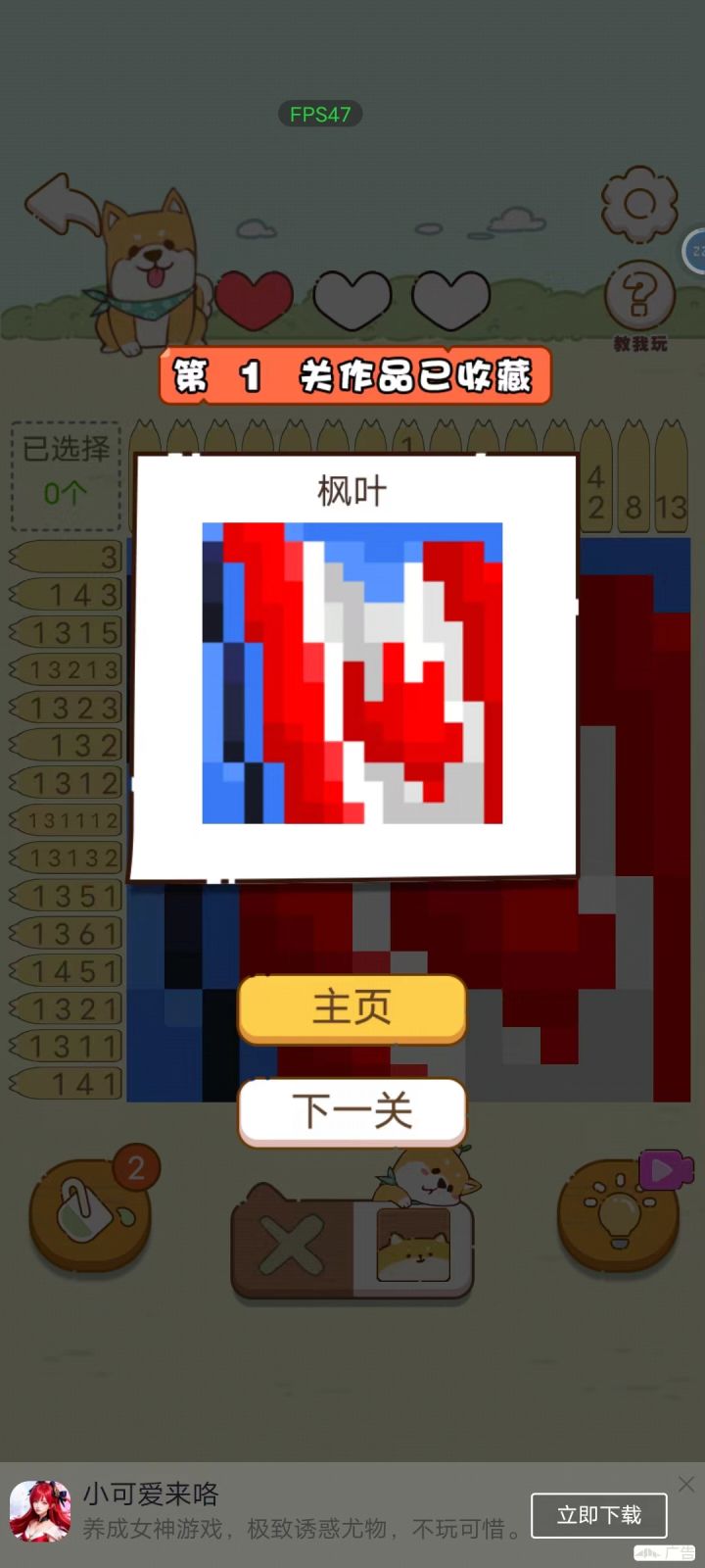 玩完了,特别不错呀!感觉最近已经开始要迷上这种游戏了😸😸😸玩到困难的15x15才有那种推理的感觉!动动脑有时候也挺享受的,总之就是对自己要求无伤通关这一块!