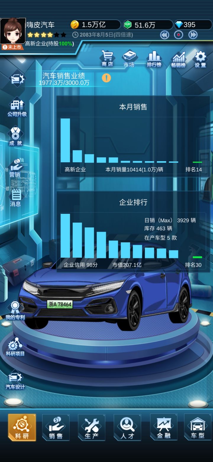 ,玩到2083年没意思了,就不想玩了,主要数值有问题,那个车子莫名其妙的只能产一种车。