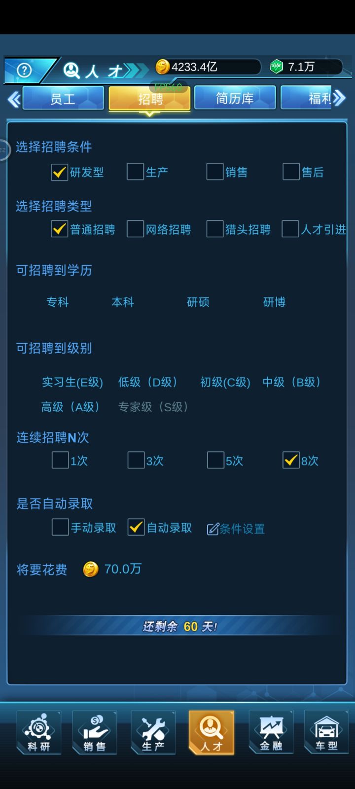 等快到10年了就把债款还清,拿到百分百股权。然后慢慢造车就好了。造车哪个贵拿哪个,注意有多选的全部选上。然后开始招聘人c以上生产和销售全要,把那个一键升级点个10次,升级人最划算,便宜又好用。