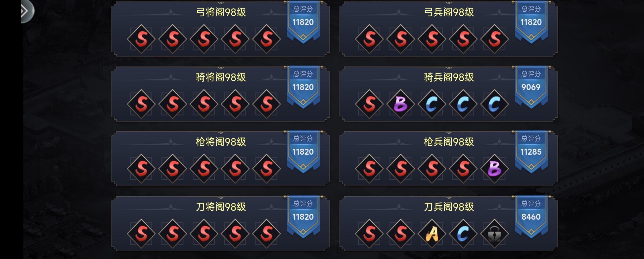 龙图阁是战力提升的重中之重,所以剿匪要经常剿,一些兵种的红将数量是不够的所以橙将也可以提前培养