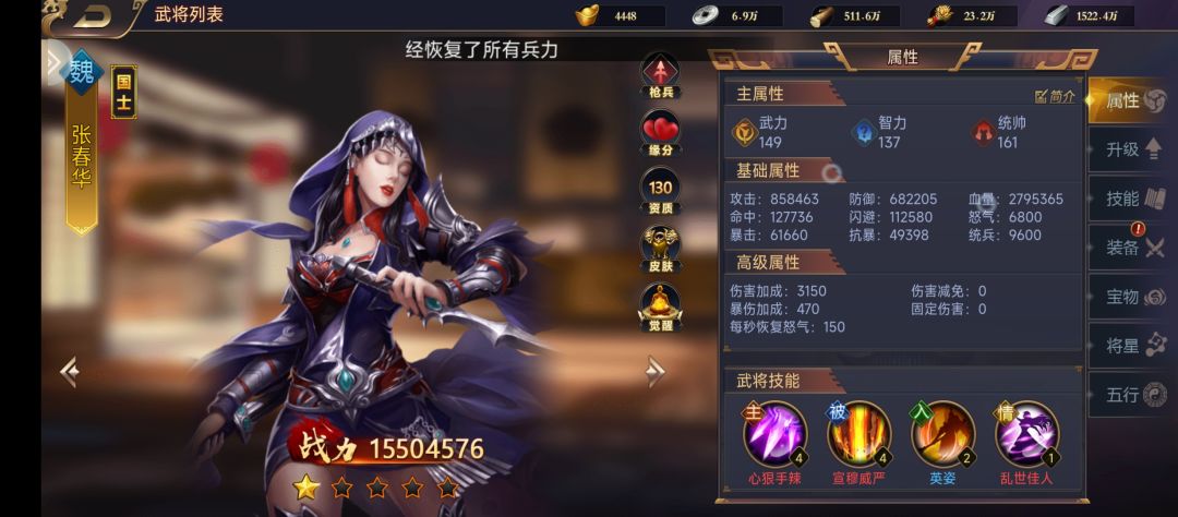 #游戏攻略 发现好多平民玩家与微氪玩家的队伍养的都是一塌糊涂,队伍靠自己摸索成形后已经浪费了大量宝贵资源,所以出一篇队伍养成攻略,以供参考。 1.队伍一:王异+甄姬+张春华+赵云+曹操 阵容分析: 王异与甄姬的情义技强的过分,两人同时上场,王异血量低于50%时恢复全体武将所有生命值,续航能力NO.1,而甄姬的被动与主动技都是回血,进一步增强了该队伍的抗揍能力 张春华与甄姬同样有情义技,虽然没有那