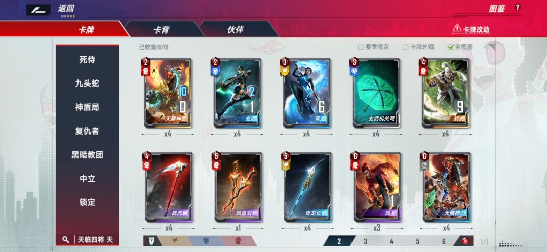 听说国服准备出天临四将,由于我玩亚服接触得比较早,现在拿我以前组的卡组出来抛砖引玉。 天临四将没有漫画,最早出现在游戏漫威未来战士里面,主要是四圣兽加一个神兽,最早在亚服好像叫的天空战士(英文直译),后改为天临四将。 首先是神兽,2费金卡,一般用作主力,分别四三二次行动。(这卡不能打出,如果开局场上有那就是幽灵随机出来的。。) 合体的意思看最后背景字,是包括词条,厉害就厉害在包括词条(后面细讲)以