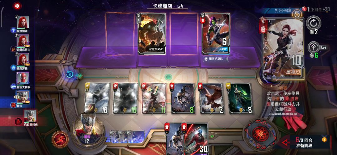统一战线真的很容易被人忽视,其实是一套成本低战力高的一个套路。新星作为一张锁定卡很容易被人忽视,但实际上配合统一战线可以无限翻倍战斗力;罗南效果则是我方人数少于对方则无视所有战斗伤害;星爵为我方人数少于对方直接移除对方价格最低的角色牌;卡魔拉则是战斗前将非统一战线的角色牌移除,统一战线获得被移出角色的一半战力;毁灭者则是获得守护效果,被击败后将对方战力最高的角色战力减半并眩晕。