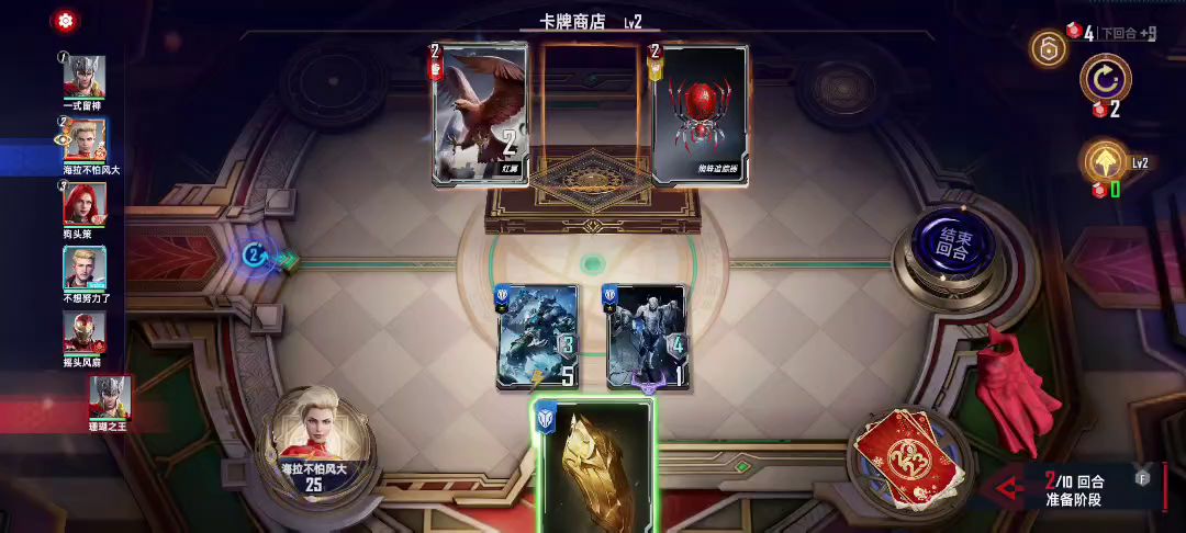 【漫威对决】新手入门教学(三)宝石篇 版本:V1.0.20210928 作者:九头蛇-虎牙张某人 上期讲了卡牌的构成后相信大部分玩家已经基本掌握了基础的玩法,但还是有人问我为什么经常打不过人家,什么时候该升级商店,什么时候该去提高卡组质量,这期咱们就着重点讲战斗中宝石的运用 有些小伙伴会在第一回合买一张卡牌然后选择升级商店,这种行为是不可取的,因为每回合战斗完毕升级商店的费用都会降低2宝石,