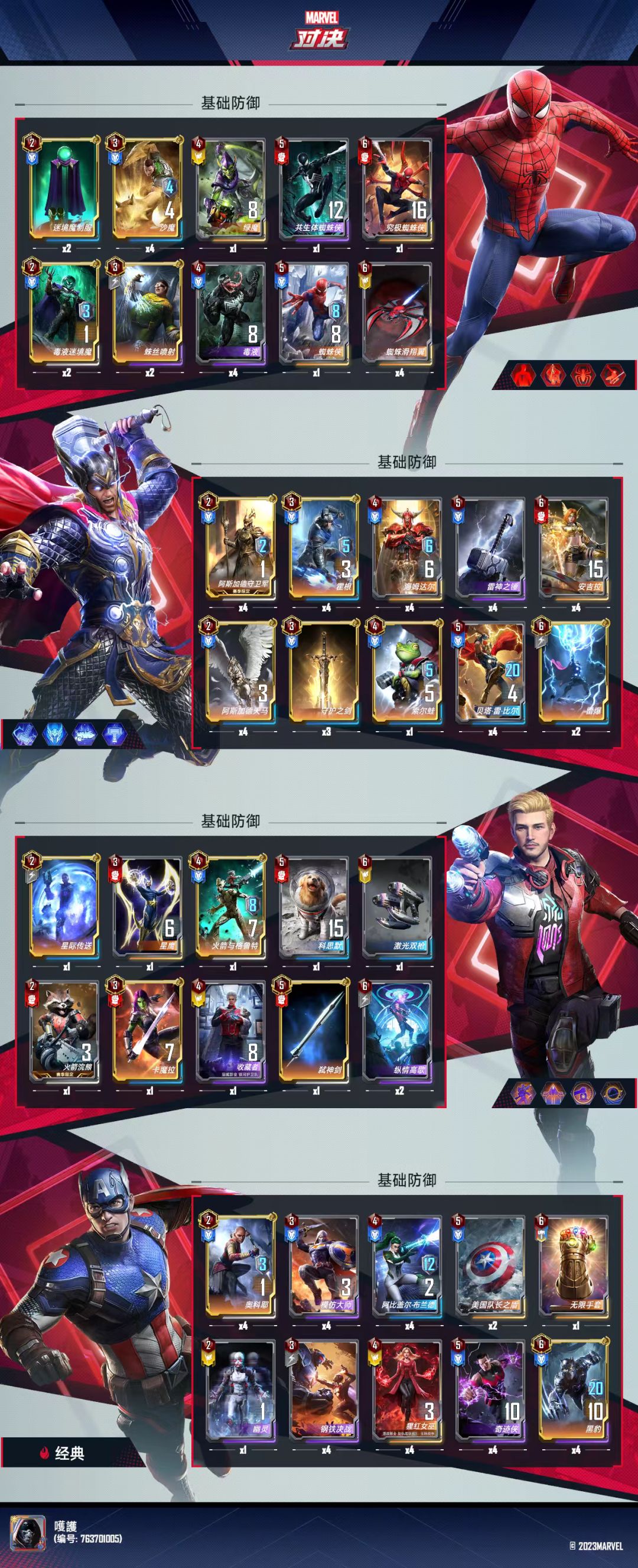 原帖是大佬发布在NGA的攻略贴,个人在使用过程中受益颇多,申请搬运到taptap供大家使用。不做任何商业用途,如有侵权,我会立即删除本帖。 漫威对决S20: 不吃手速稳定上王卡组推荐之——九头蛇(雅思阁) 大家好我是雅思阁(id:2028301001) 这个赛季比较懒每天只想打一把箱子做做任务就下线,所以选择了一套相对操作简单无脑的九头蛇卡组,这套是上上赛季榜一的榴莲来了学习讨论我又进一步精简,又