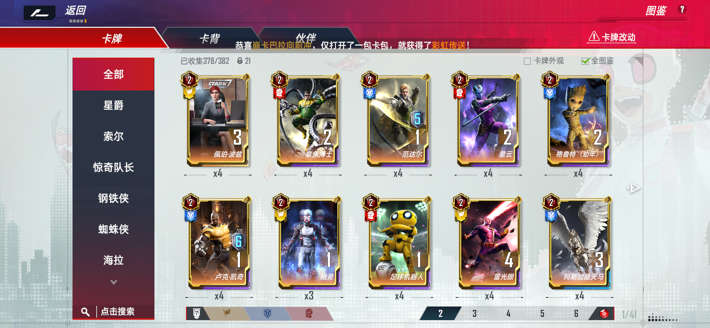 解答新人疑问,欢迎加入狗头蛇不知不觉这个游戏也开服半年了从开始的奋力冲刺慢慢也变成了卡牌收集还会有新人吗?还有新玩家吗?如果你刚刚加入漫威,很多事情不清楚不妨说出疑问,我作为一个收藏端毕业的玩家,可以给你一些小小的建议另外:特工队【狗头蛇】招人!!!!!——点击领取【电击头盔】——狗头蛇万岁!我的个人V信:xuchenxi619