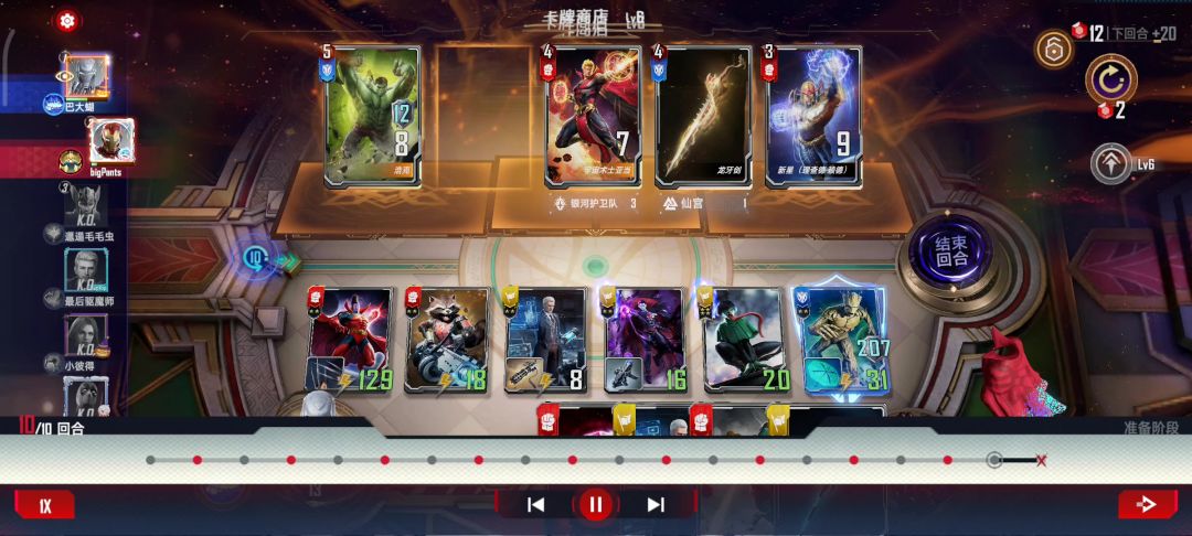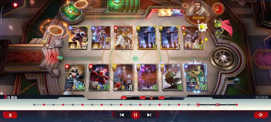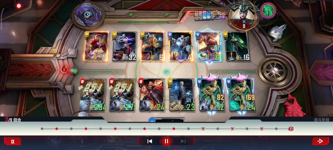 冬兵!这一把还真就把下面的注释体现的淋漓尽致了“即使遭遇了可怕的背叛,他仍然活跃在对抗九头蛇的第一线😤冬兵的行动力和决心无可置疑🥰” 顺便骂一下发牌员😅第八回合还两张三费两张两费在场上我是真的很难想象
