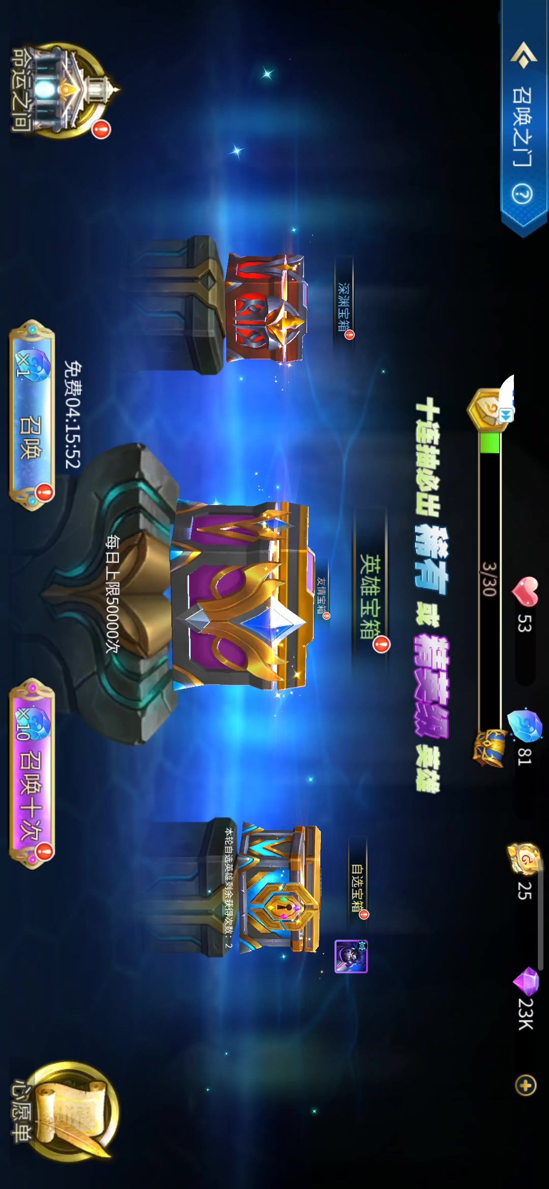 抽取2位获得:钻石*2000、英雄精华*500、阵营召唤石*10