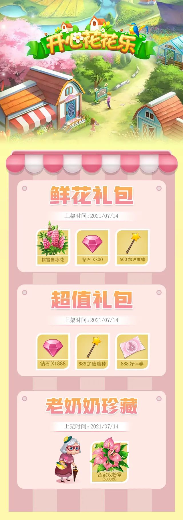 炎炎夏日,最幸福的事就是窝在家里吹着空调,左手冰淇凌,右手西瓜。 又或者去看看花海,享受花海盛宴。 但,如果太热不想出门,那不如就来《开心花花乐》亲自种下一片花海吧! 美/丽/的/花/海 活动期间,超多美丽鲜花等你种植,种植收获的鲜花还可以兑换道具,领取神秘鲜花哦! 活动规则 1、鲜花换活动道具+金币,活动订单的金币是鲜花订单的1.5倍 2、钻石可以购买活动道具和水滴 3、累计的活动道具可以兑换奖