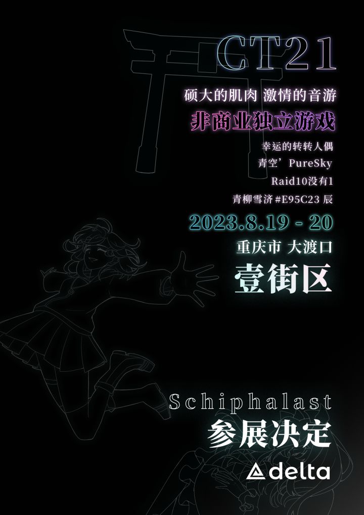 好久不见!这次给大家带来的是来自雾都的CT21参展预告!在这次展会上,我们准备了全新版本的Schiphalast:相较于1.0.6版本,除常规优化外我们将首次在线下尝试展示玩家们关心已久的拼机模式,并带来了更加现代与统一的UI。尚不能参展的小伙伴也不必着急,这之后相关的功能也将陆续上线游戏。不仅如此,在展会上您还将见到按照全新形象时分秒设计的立牌等全新的周边产品。展会的详细事项见下图,摊位位置