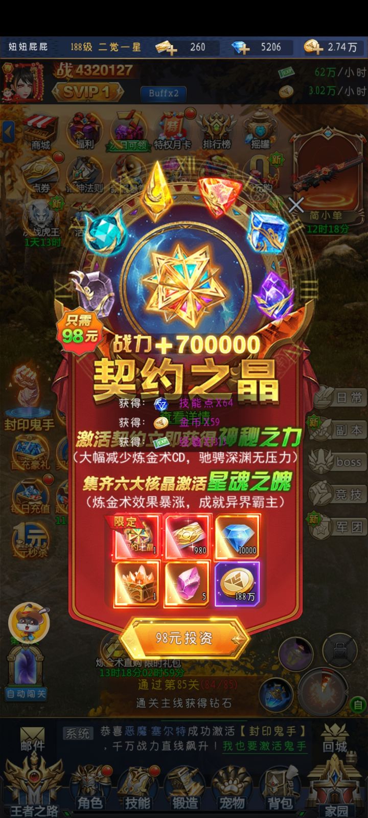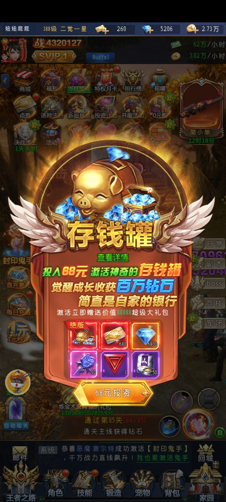 天天都有充钱的活动,最好体验过后考虑好要不要充,不充钱PVP前一个星期都打不过人机,玩的人不是特别多,游戏就这样还是有好有坏吧。