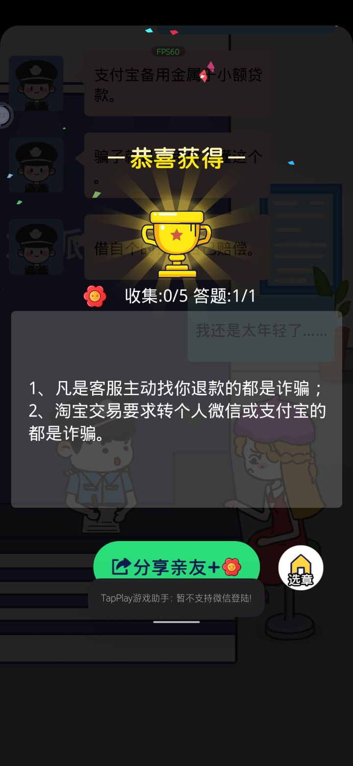这个是跟公安局还有游戏公司联合出的游戏,But与其说是游戏,不如说是科普教育,不过仍有一些花招是我们想象不到的,诈骗就是一潭深不见底的池水,如果你不去触碰它,那么它也不会把你怎么样。