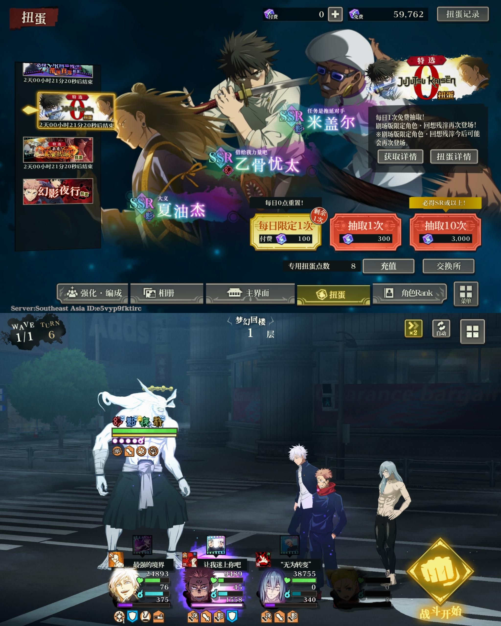 游戏挺好玩,剧情就是动漫剧情,可以跳过,打斗就是崩铁那种回合制游戏,我一般开自动挡,主页面可以更换自己喜欢的角色,就算没有抽到也可以换,冷门也有,夜蛾正道,伊地知先生,漏壶那些冷门角色都在,冷推也能见到,换手机登录时要注意服务器,服务器登错了就算账号是对的,也是开新号。主要是喜欢真人,想见他,能在游戏里见到他我很开心,我这个号挺欧的,一直用的送的限时卷抽的,也可能是被米某游祸害久了,回珠从开号来新手教程后就没抽过了,一直攒着想抽真人