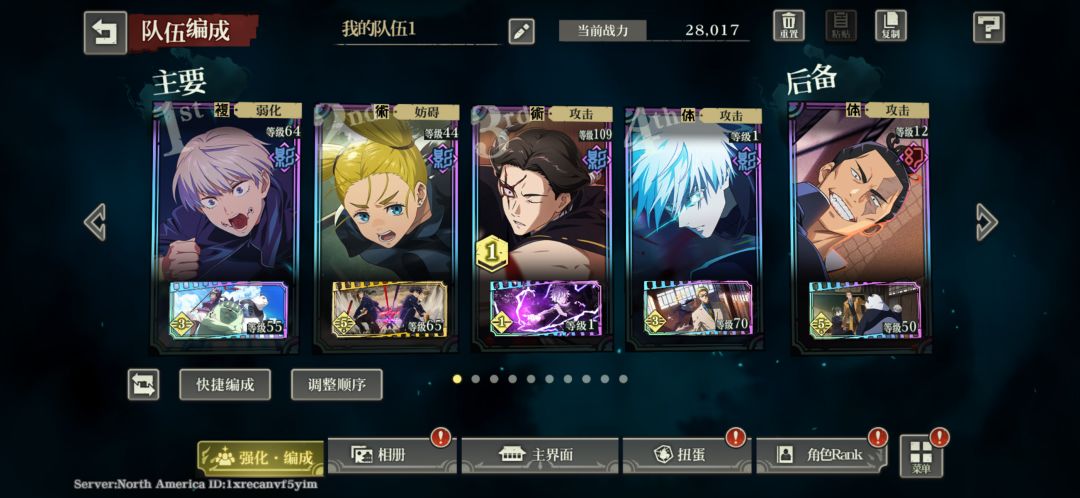 第一回:校长2+回想、狗卷2、领域惠3、五条1+回想打血涂(喷血的) 第二回合:校长2、狗卷2、领域惠3+回想、五条1打坏相 第三回合:校长2、西宫桃2、领域惠大招打血涂、五条1打血涂 第四回合:校长2、西宫桃2+回想、领域惠1打坏相、五条3打坏相 第五回合:校长2、西宫桃2、领域惠1打血涂、五条2打血涂 第六回:校长2、西宫桃2、领域惠1打血涂、五条大招+回想 注意的点:第三回合开始得把狗卷换下