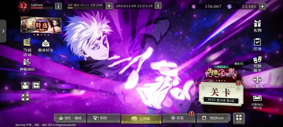 近期回顾大事件:幻属性野蔷薇卡池开放,ssr夜七海以及ssr夜虎杖出率提升,同时官方分批发放限定70抽,百鬼夜行之日发钻,无限池活动“为谁而心潮澎湃”开启,建议狂刷材料!