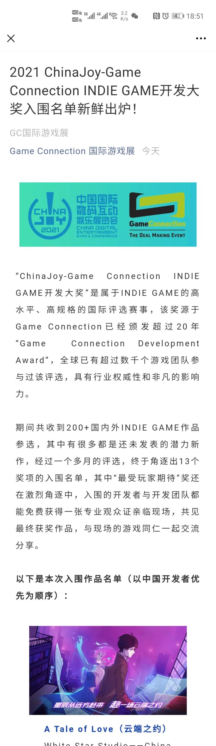 啊哈!咱游戏入围了GC大奖提名,不知道有木有机会拿到最后的大奖哈哈~ 要是咱效率能提升起来,把功能和美术品质都做到位,拿大奖肯定很轻松~