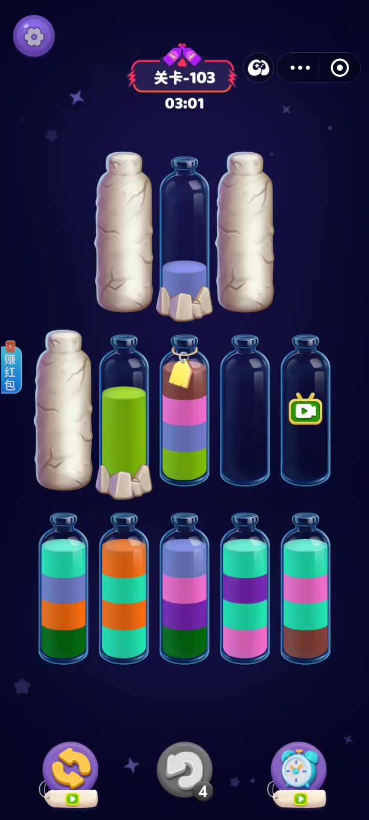 这个关卡难度设置得不太合理啊,它前面的关我恨不得多一个空瓶,这一关减一个空瓶也能过
