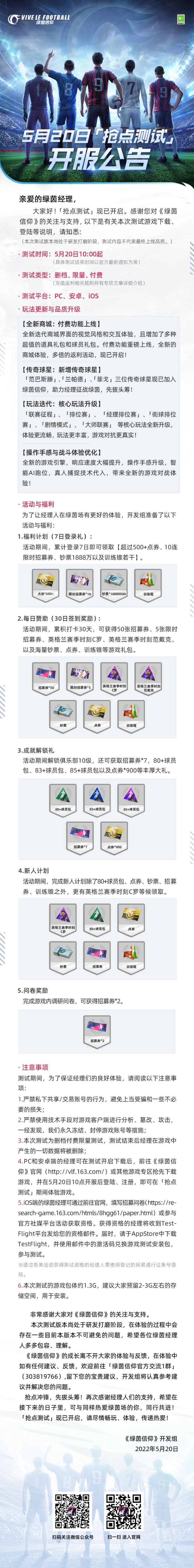 「抢点测试」现已全面开启!绿茵场期待你的降临!