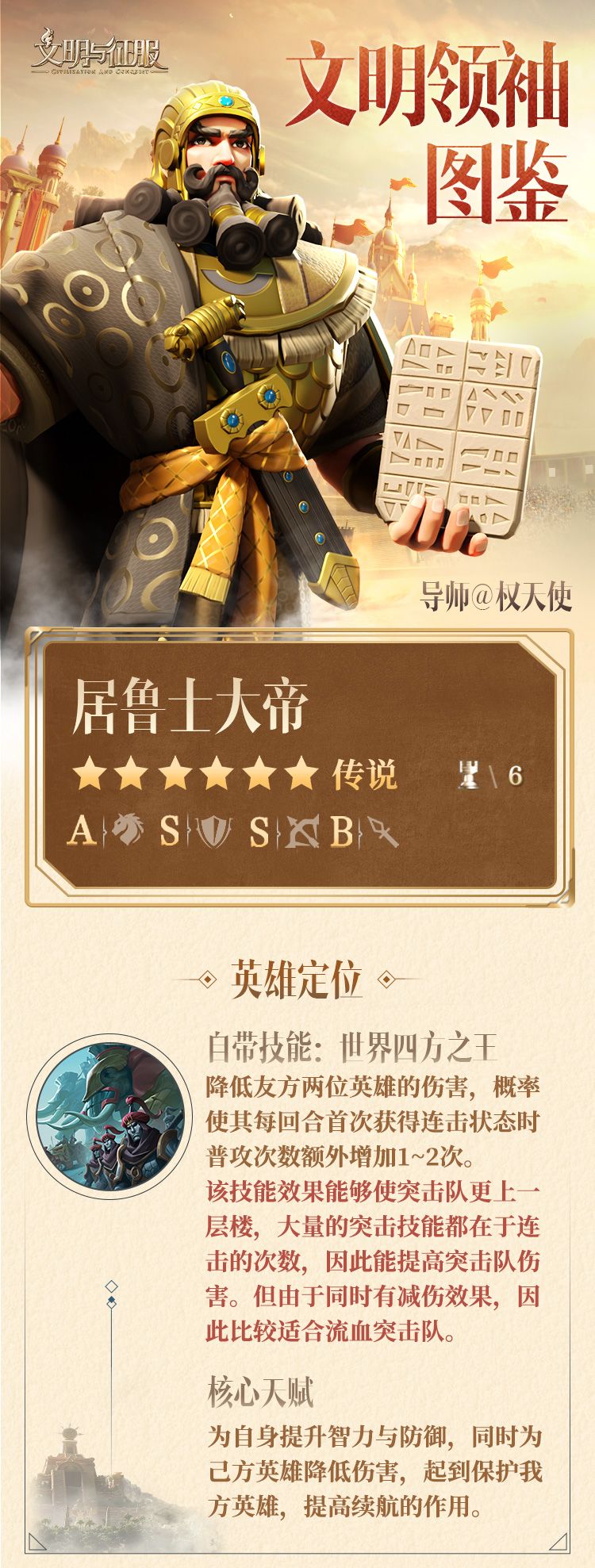 流血派系是突击队的主要派系之一 在这个派系中 居鲁士大帝可谓是核心英雄之一 今天就为大家带来 流血突击队的搭配思路 本攻略来自战略学院 导师@顾辞 Civilization and Conquest 前言 /01 流血体系在游戏中已经出现了很长时间,其强度一直有所不足,而居鲁士大帝的出现,弥补了流血体系连击不足的短板,使得流血队的伤害有了大幅度的提升。也因此,居鲁士大帝成为了当前版本流