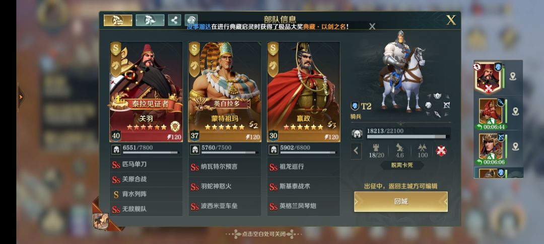 25年Z3战区,7月份酒馆关羽配将分享。#文明与征服庄子配将