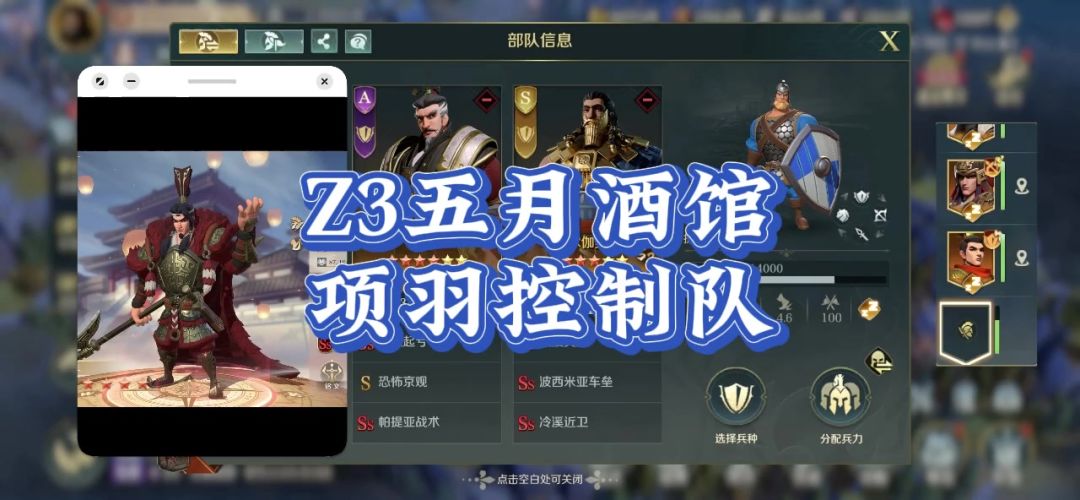 酒馆项羽控制足,伤害高,庄子重点推荐。#新游攻略先锋企划#文明与征服庄子配将
