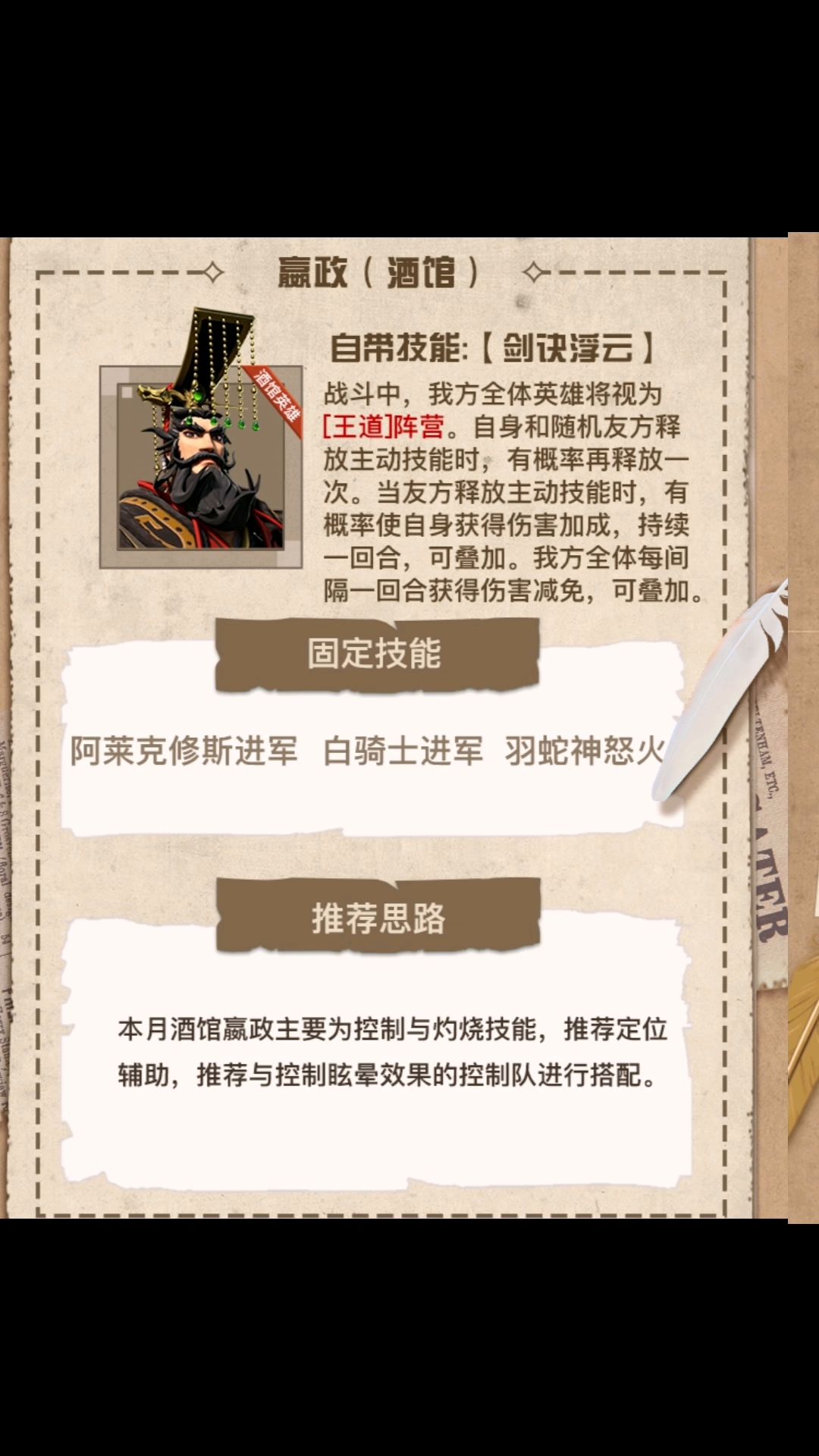 大家要的第二个酒馆英雄,庄子推荐嬴政。赶紧学。主要思路就是配合带主动技能的,让主动技能再释放一次,从而造成爆炸的输出。#游戏种草计划#文明与征服庄子配将#文明与征服阵容搭配#文明与征服#文明与征服黑科技阵容分享