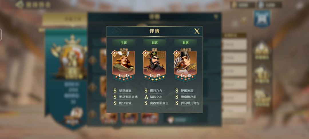 #文明共创第四季# 大家好,我是战略学院季沧海,本期给大家带来,平民北条队的讲解,之前的几期都是毕业队的讲解,但是北条队更平民,任何技能搭配都可以,没有准确毕业这个说法,是s1到s3都可以搭配的阵容,非常好用。 北条队最核心的北条,是非常容易满红的,北条队中的坦克海尔曼也是,嬴政即便是红色的,也可以玩,图中给大家讲解的是海尔曼主将的北条, 海尔曼,罗马军团盾墙可以换瑞士卫队以及a级技能阵前谩骂,固