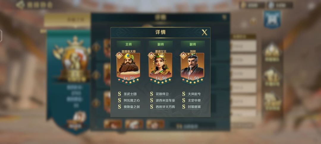 #文明共创第四季# 大家好,我是战略学院季沧海。本期给大家带来s1一个偏平民的队伍,查理曼法骑队,查理曼的决胜在第二位置,容易决胜,并且他的法骑的两个副将,刘邦和善德女王都不是太吃红度,而且法骑克制的队伍非常的多,战场上是非常非常无敌的存在,非常推荐大家拓印奥剑。 查理曼,刘邦,善德女王。共同构成骑兵3s,兵种适配,可玩性极强,下面给大家讲解讲解技能。 查理曼最大的核心奥剑,不可替换,阿瓦隆可以用