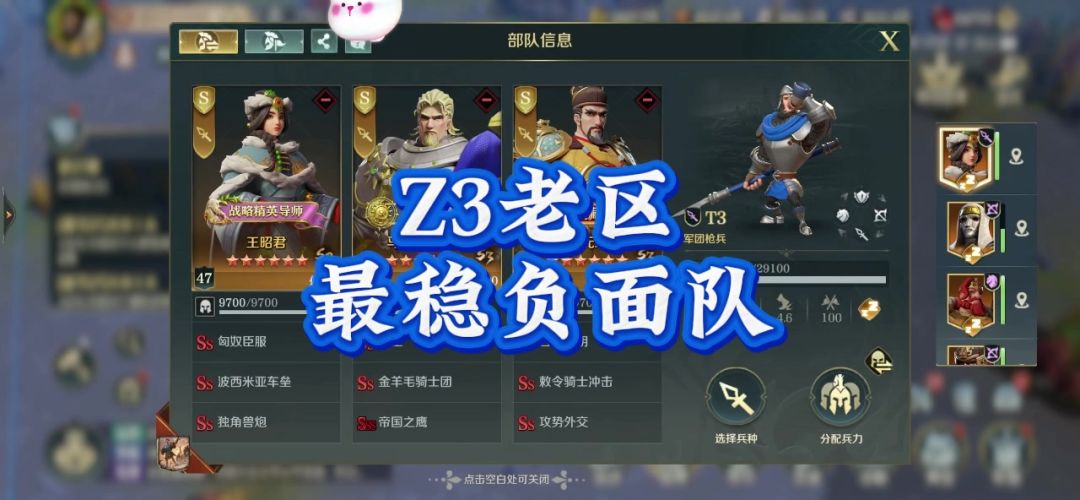 Z3老区,配将一览表。负面队的配法有点多,看看你喜欢哪队?