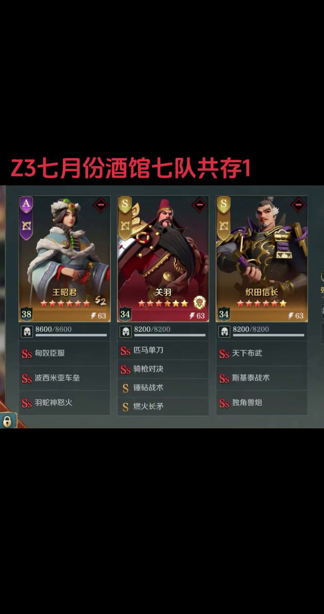 Z3七月份酒馆。7队共存配将思路。主要是前五队,拿走不谢