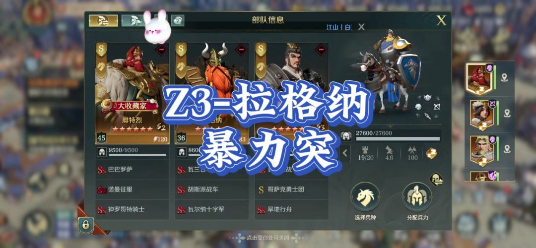 #文明与征服庄子配将 Z3拉格纳暴力突也厉害,如果你的技能都觉醒的话。