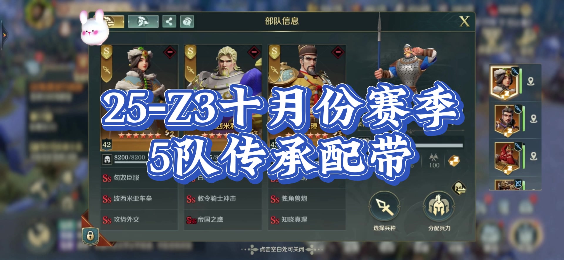 2025年Z3十月份赛季,5队传承配带。#文明与征服庄子配将