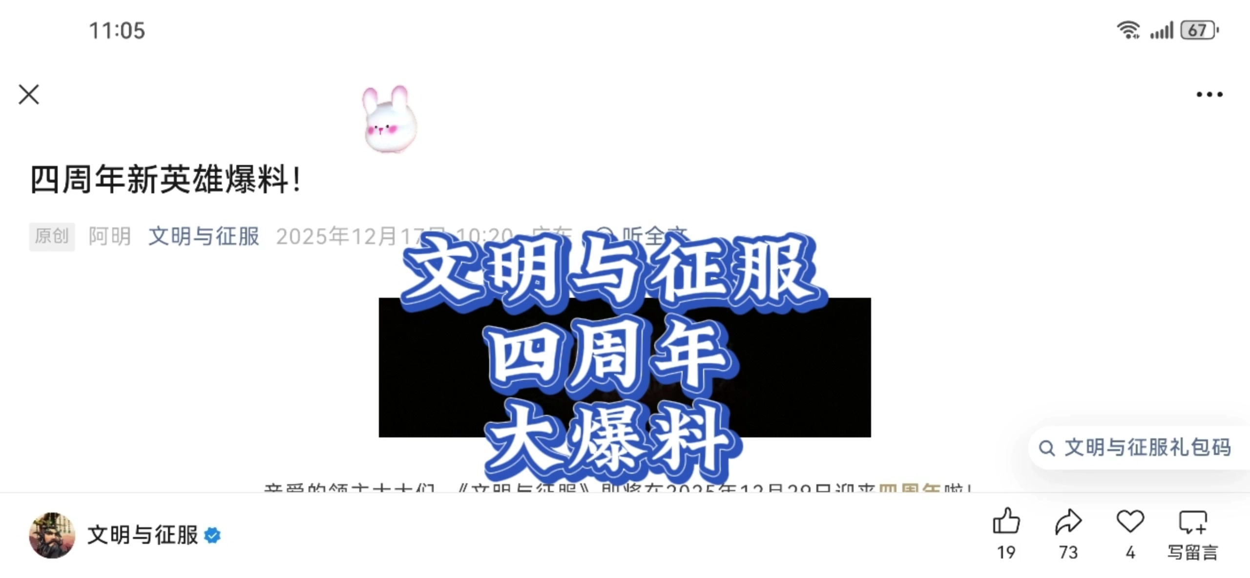 大家心心念的四周年马上来啦,一起期待吧。#文明与征服庄子配将