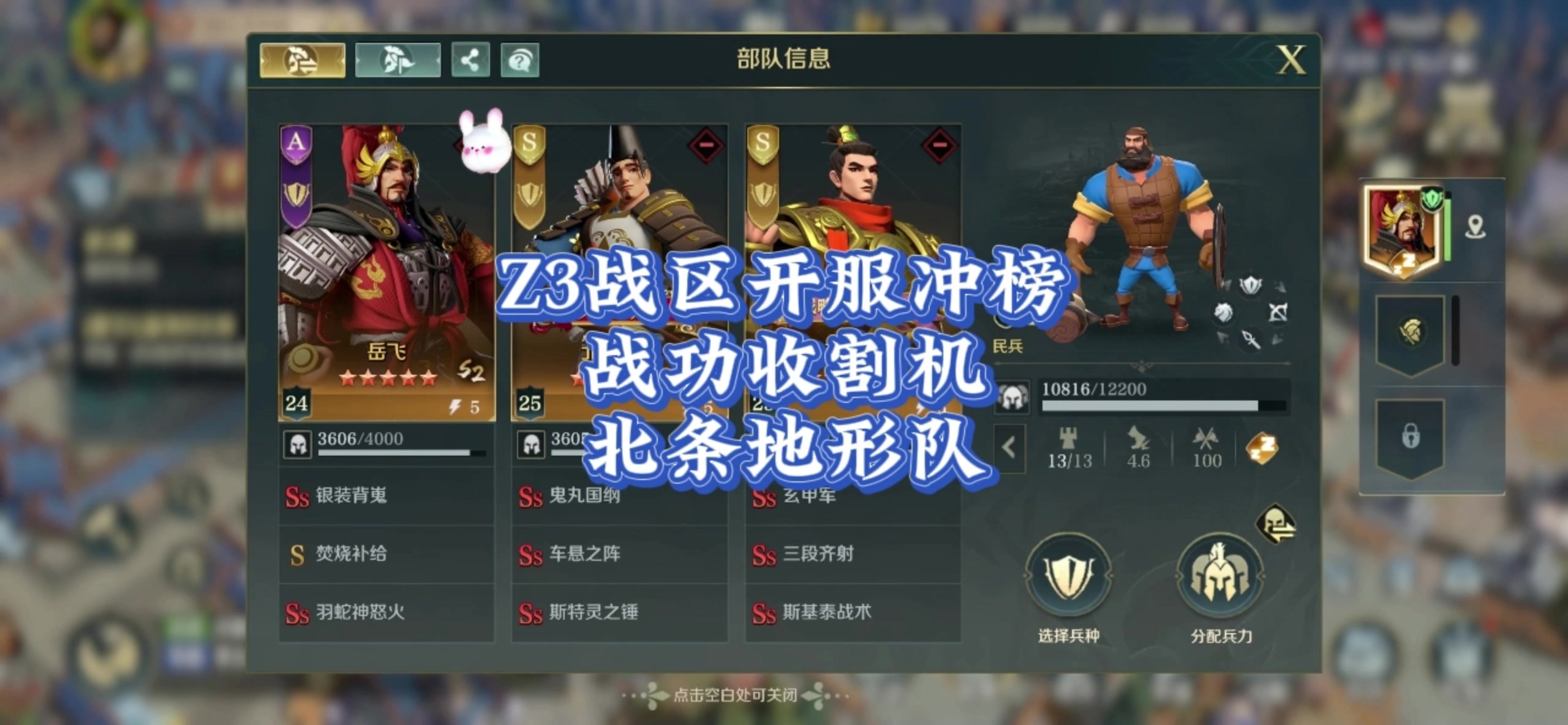 Z3战区,开服战功收割机,地形北条队!#文明与征服庄子配将