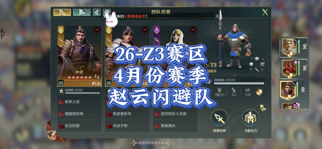 2026年Z3 4月份赛季,闪避队配将细节。#文明与征服庄子配将