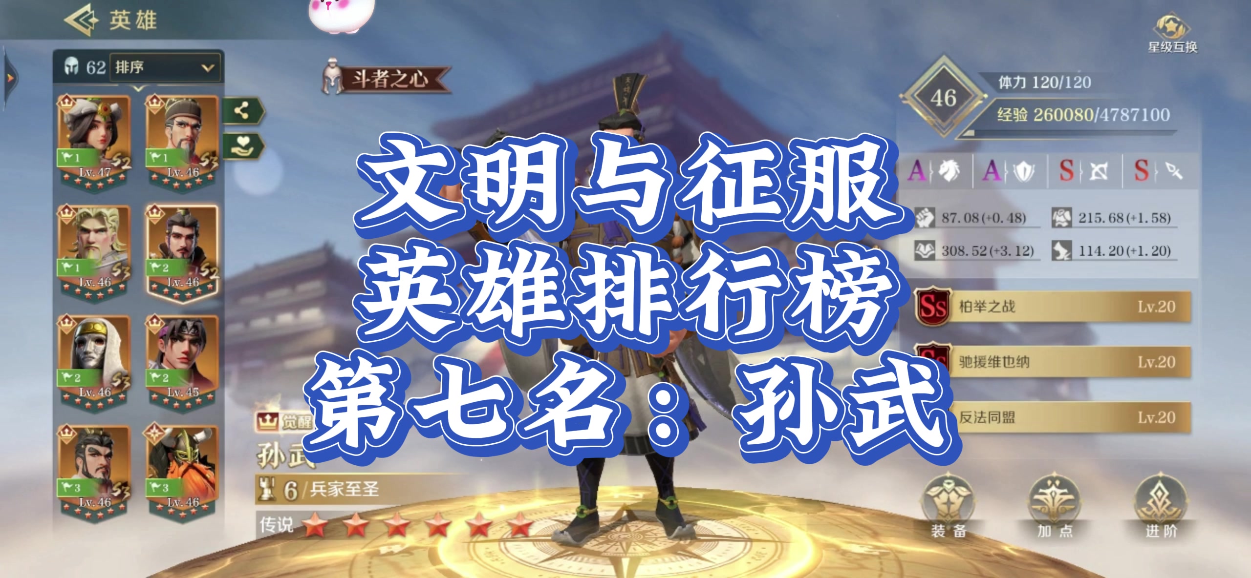 文明与征服英雄排行榜,第七名,孙武!#文明与征服庄子配将