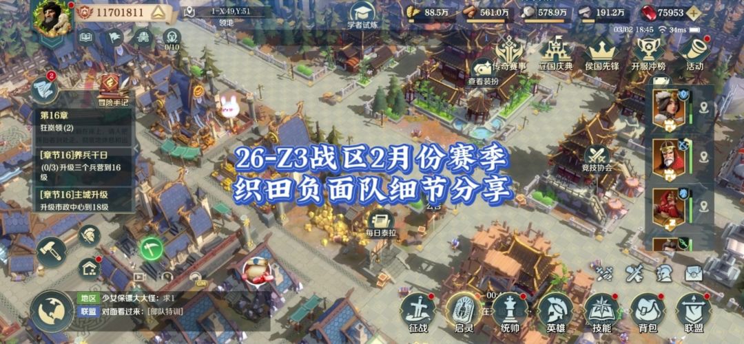 2026年Z3战区2月份赛季,织田负面队细节分享。#文明与征服庄子配将