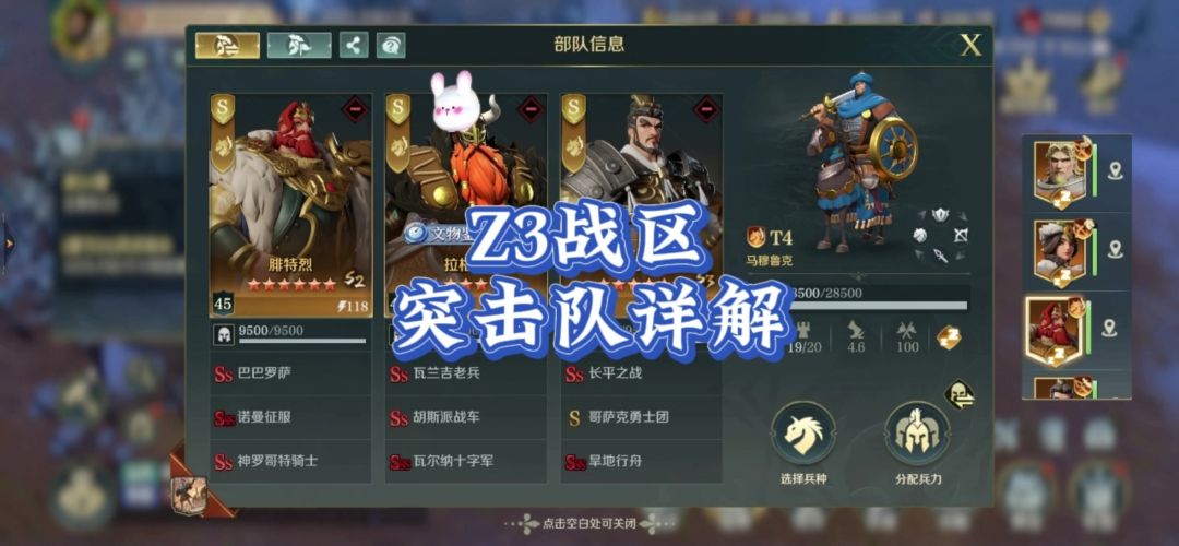 Z3老区突击队,装备,加点,传承细节。#文明与征服庄子配将