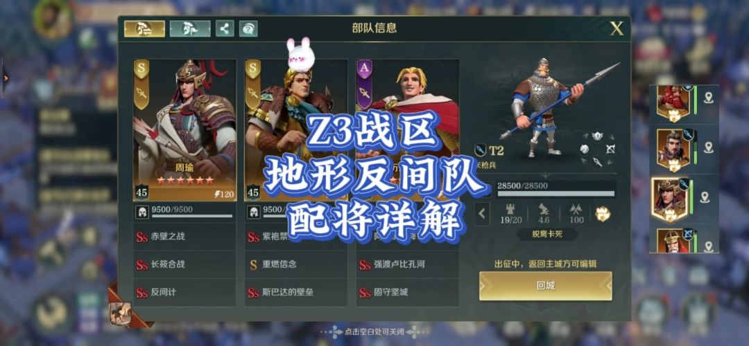 Z3战区,地形反间队配将详解。#文明与征服庄子配将
