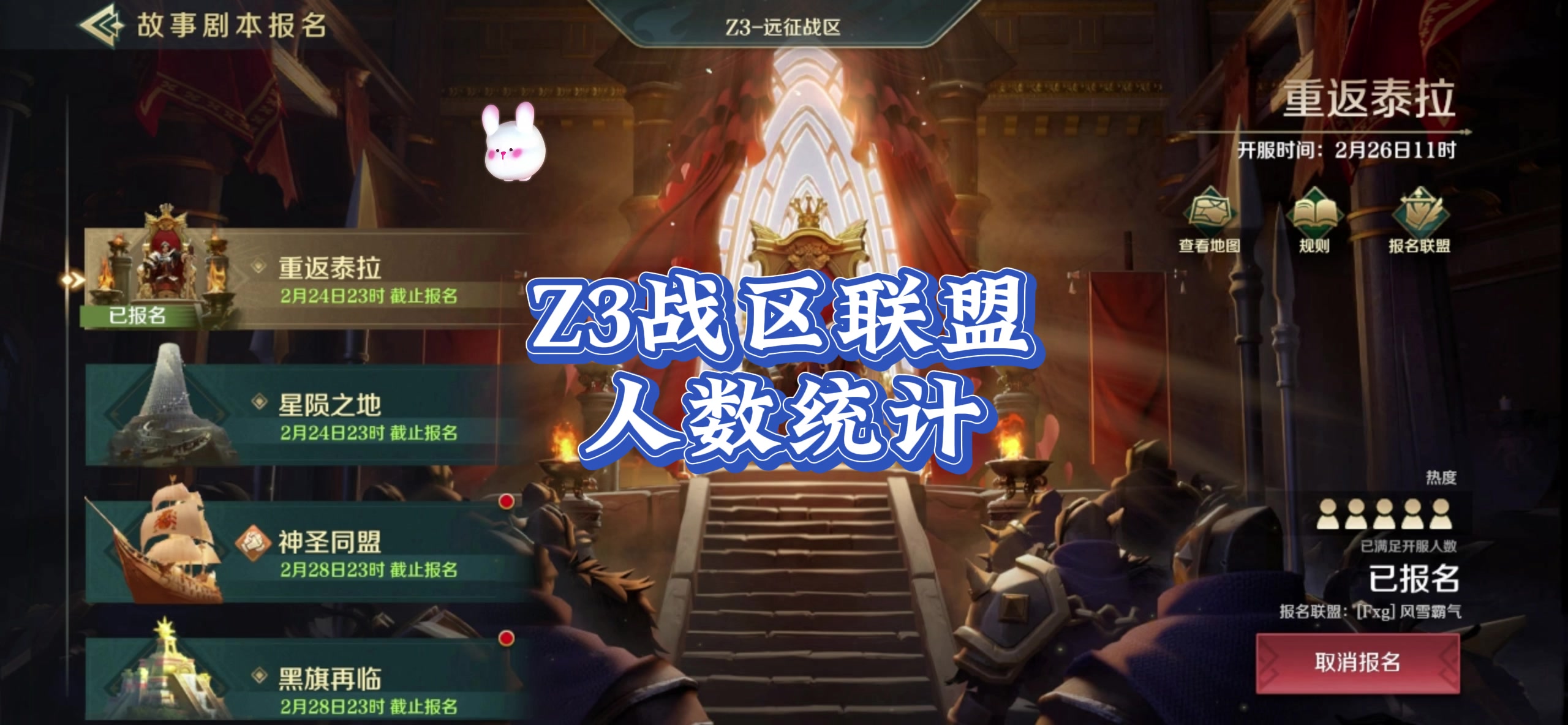 2026年2月24号,Z3战区联盟统计,人数统计。#文明与征服庄子配将