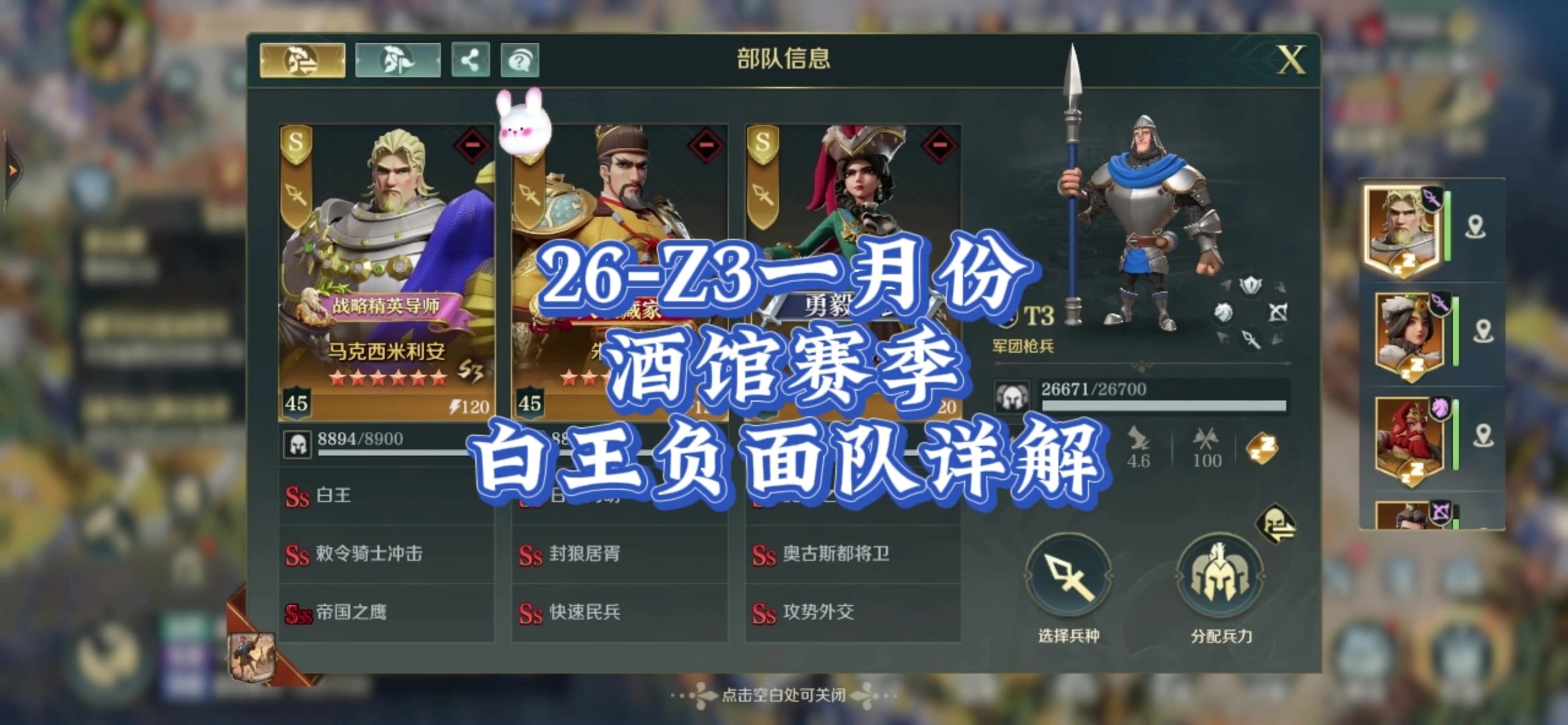 2026年Z3老区1月份酒馆赛季,白王负面队,加点,装备,传承详解。#文明与征服庄子配将