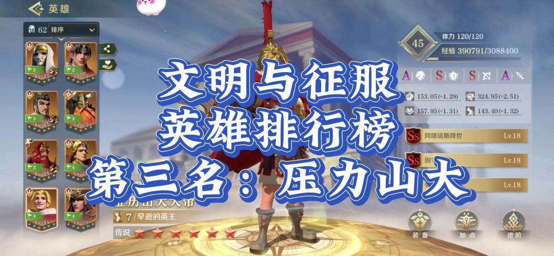 英雄排行榜,第三名:亚历山大!#文明与征服庄子配将