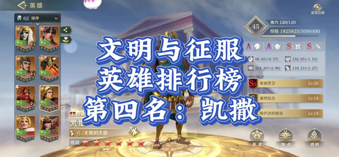 英雄排行榜第四名,凯撒。#文明与征服庄子配将