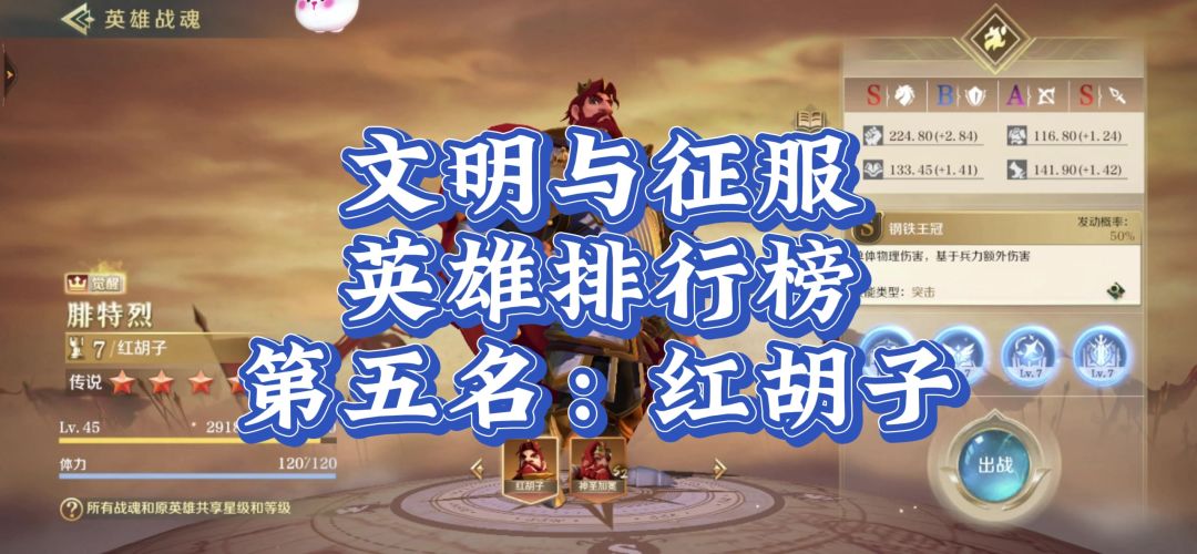 文明与征服英雄排行榜,第八名。大家按照排名顺序养培养。