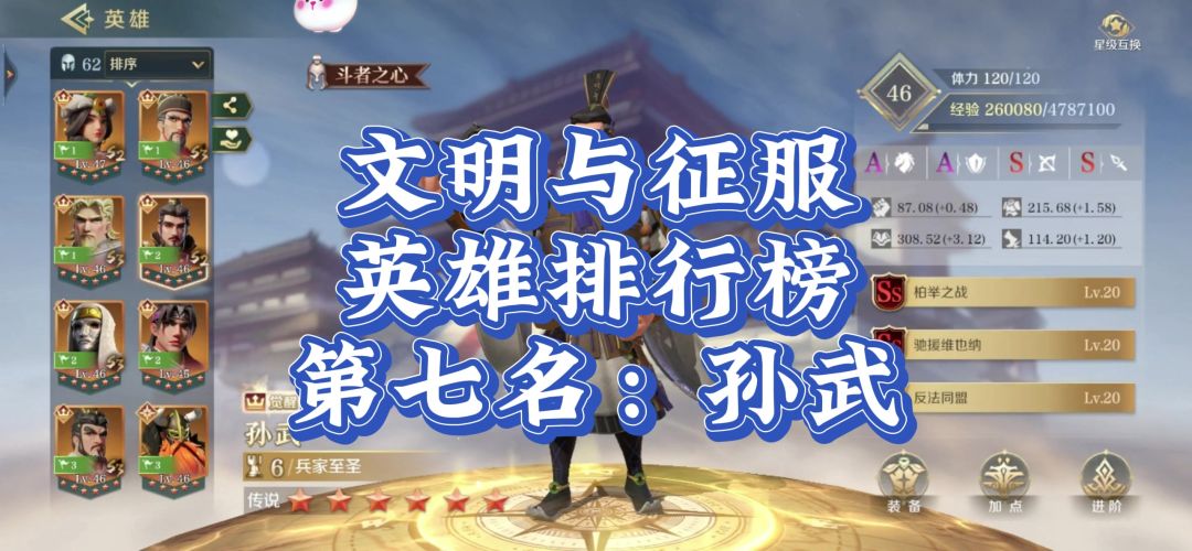 文明与征服英雄排行榜,第七名,孙武!#文明与征服庄子配将